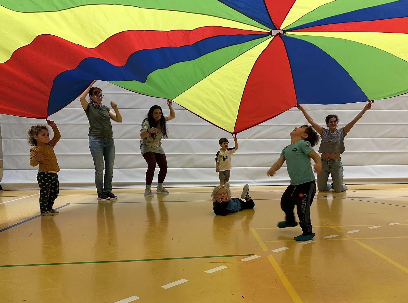 Im ElKi (Eltern-Kindturnen) sammeln die Kinder in Begleitung ihrer Eltern erste Turnstunden Erfahrungen. So wird getanzt, geturnt, ausprobiert, gelacht und sich zur Musik bewegt.